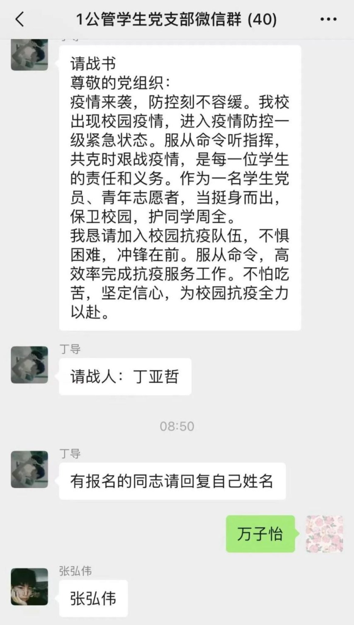 铮铮誓言,铿锵有力。“同心战疫,静候花开;温暖坚毅,共克时艰;携手共进,工大必胜”、“没有一个冬天不能逾越,没有一个春天不会来临”、“有一份热,发一份光,工大青年,勇担责任”……这一句句都是文法黄色片 党员志愿者突击队和青年志愿者突击队的同学们敢于“出手”的青春誓言。