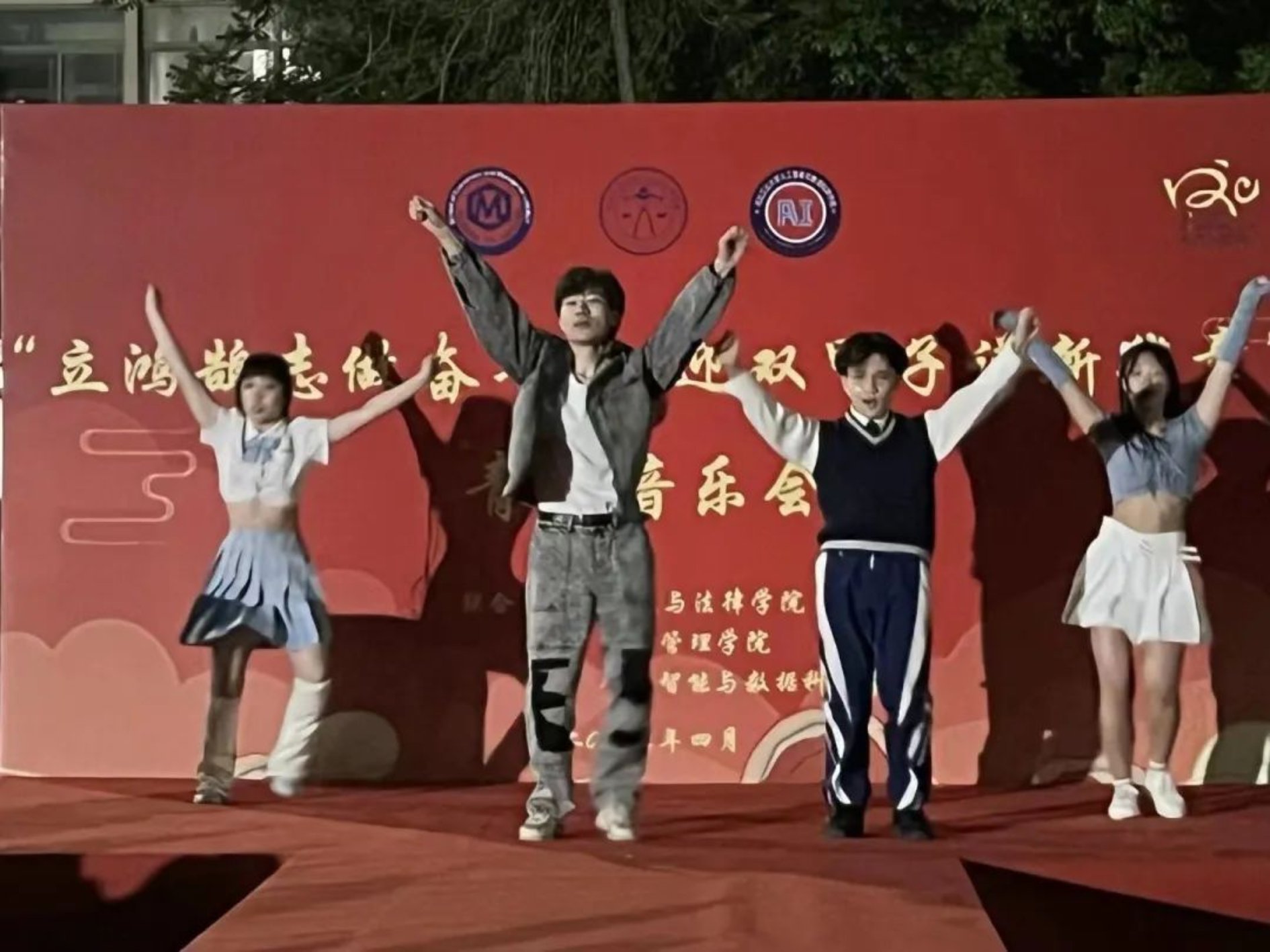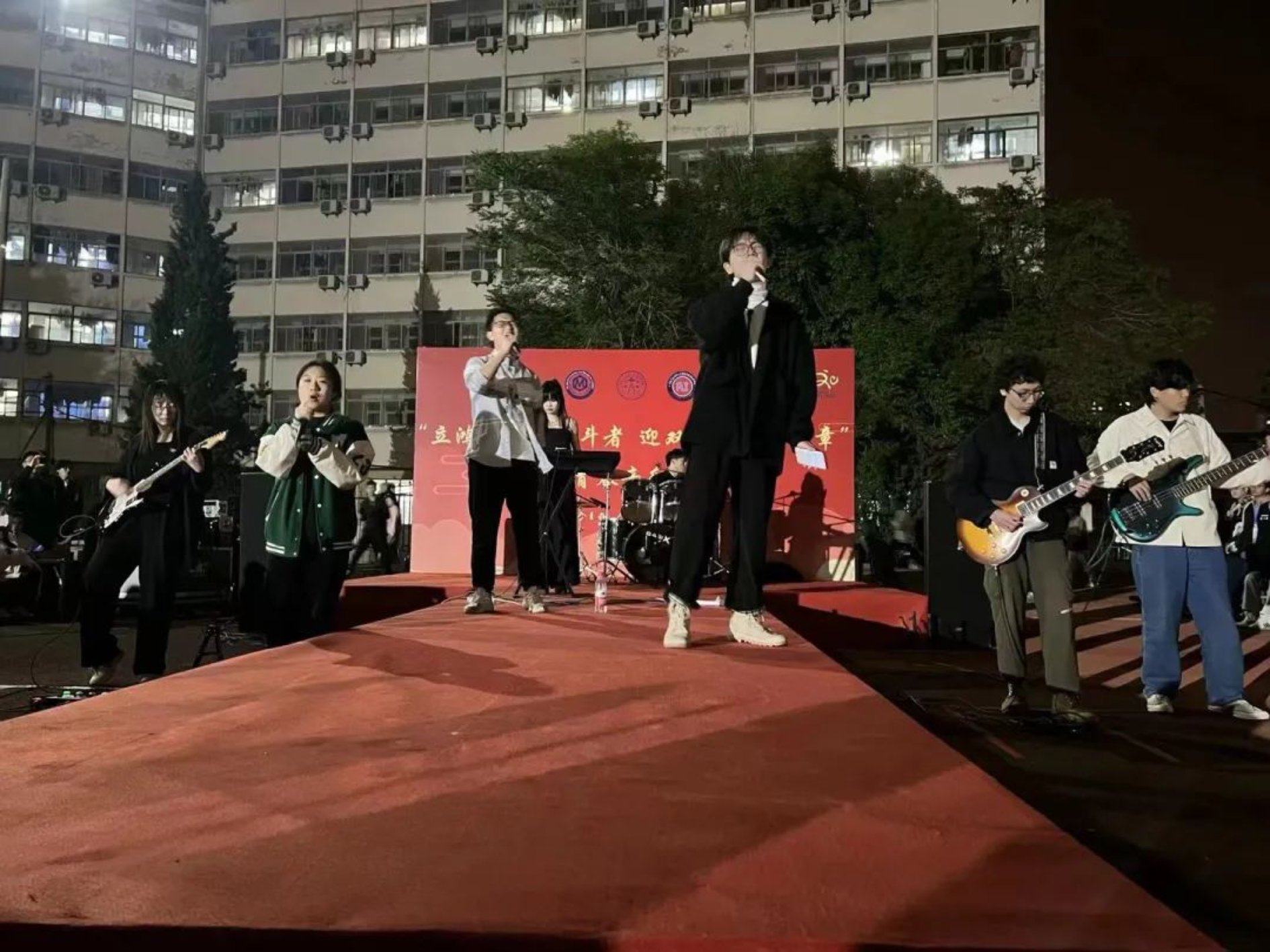 由痕迹乐队带来的歌曲串烧,让同学们都情不自禁地跟随着吟唱起来。
