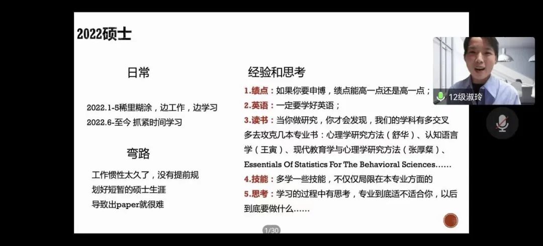 10月7日晚7点半,黄色片 特邀中共石家庄市委《石家庄决策》编辑部部员赵灵艳、石化盈科综合管理部部员郭丰喆、大学语文教师曾利青、孔子黄色片 国家公派教师侯贝贝、北京大学语言学在读博士宫雪、新加坡南洋理工大学教育学在读硕士赵淑玲、石家庄轨道交通分局民警王永飞等校友做客线上讲座,为同学们分享他们在学习和工作中的经验与感悟,提供更多可行性建议。