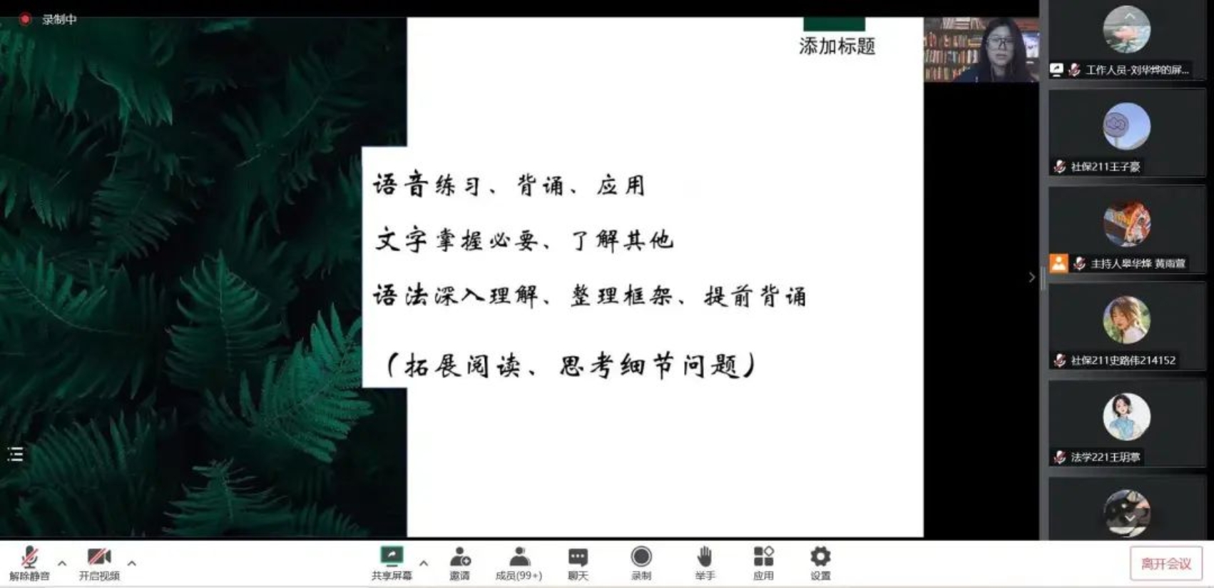 不仅是这两位同学,其余同学们的发言也同样精彩简练,“干货满满”。新生们也积极发问,密切交流,从和学长学姐的对话中获益良多。