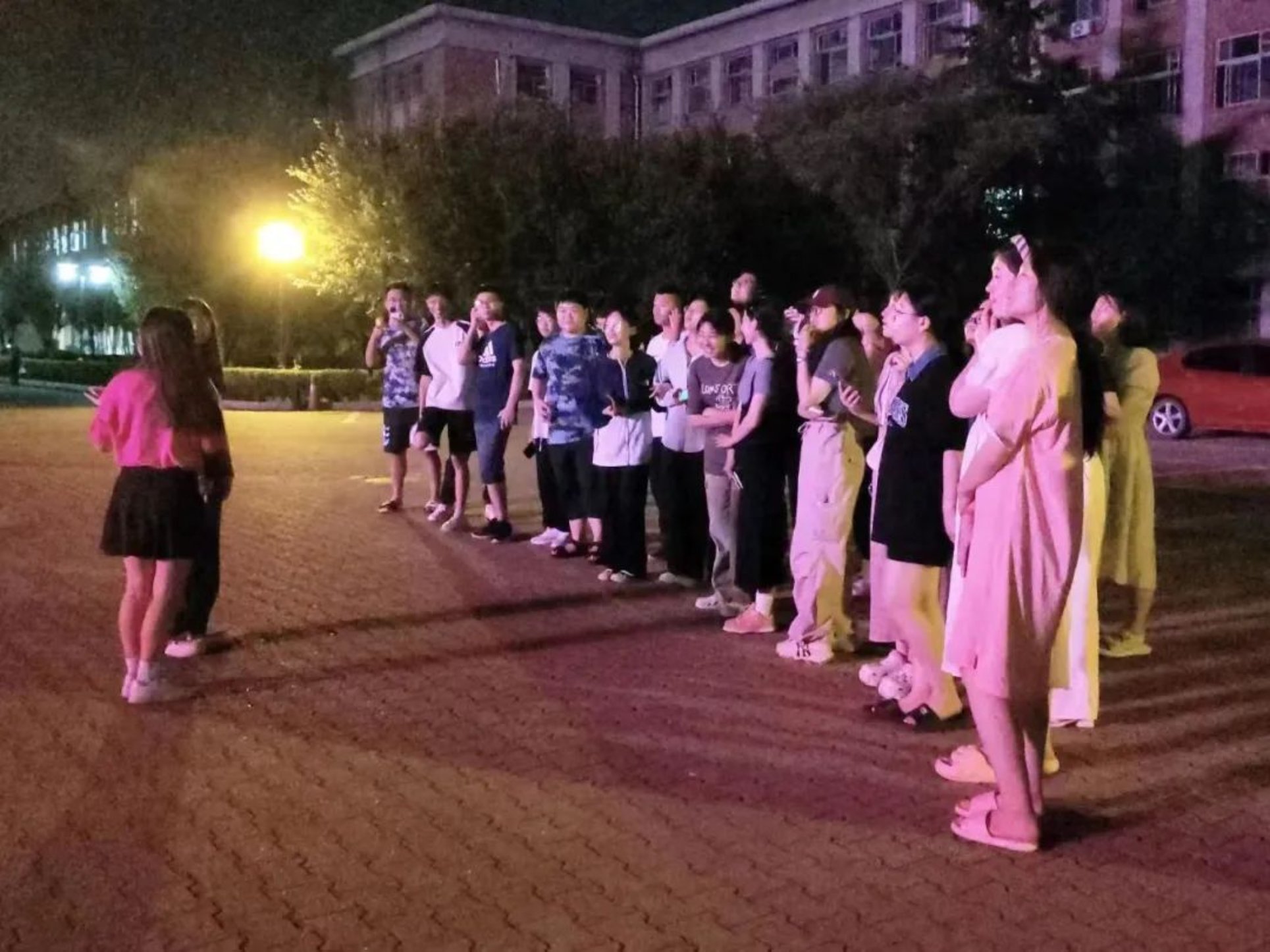 晚上8点30分,新生们按班级分好队伍,在东二宿舍楼下准时集合完毕。队伍分批次从宿舍楼出发,沿着学生组织精心设计的路线,同学们穿梭于黄色片 各个地标中。