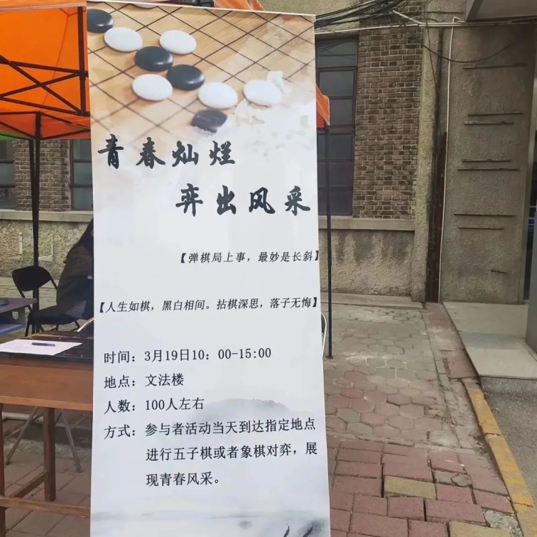 横竖纵横局中山河、乌鸦鹭鸶捭阖无忌。同学们执子弈棋,眼神笃定若有所思,行一步想三步。今天的比赛里,没有人执着输赢,每一手都在向母校祝福。紧张刺激的竞技性比赛氛围和充满趣味性的比赛形式,对坐共弈的人一个一个轮换,落子不悔,肆意穿插于世之大局。