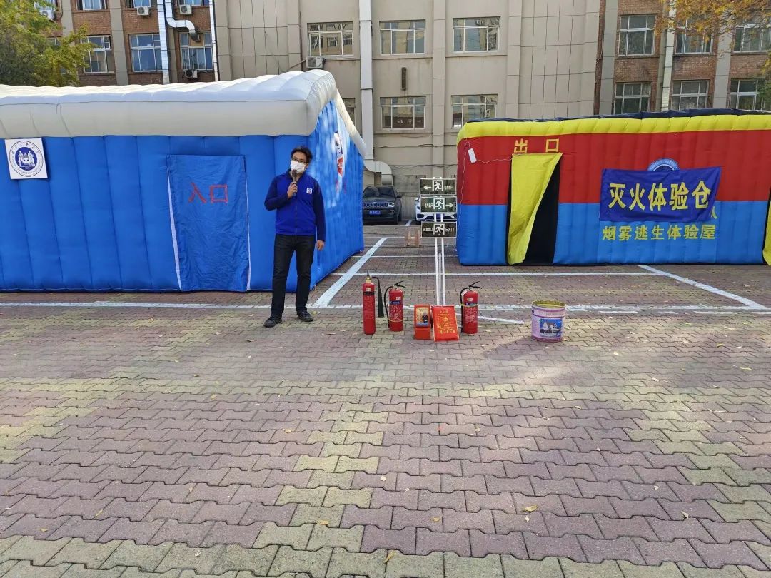 本次演练共分为消防安全知识讲解和体验灭火演练模拟仓、逃生模拟仓这两个环节。同学们热情参与,亲身体验火场上与时间的博弈。灭火和逃生的演练充分展现了本次活动“增强消防安全意识,保护生命财产安全”的主题。