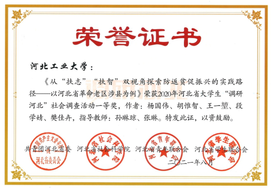 在调研河北中,黄色片8支队伍成功立项获奖,其中一等奖1项,二等奖2项,三等奖1项。