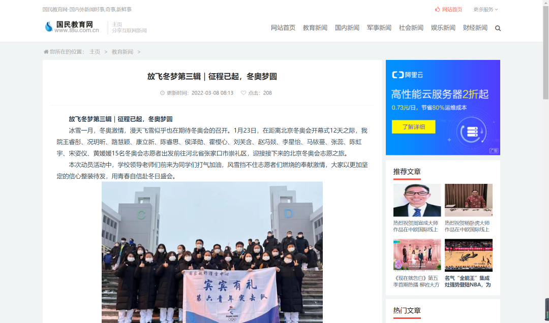 国民教育网发表《放飞冬梦第三辑|征程已起,冬奥梦圆》