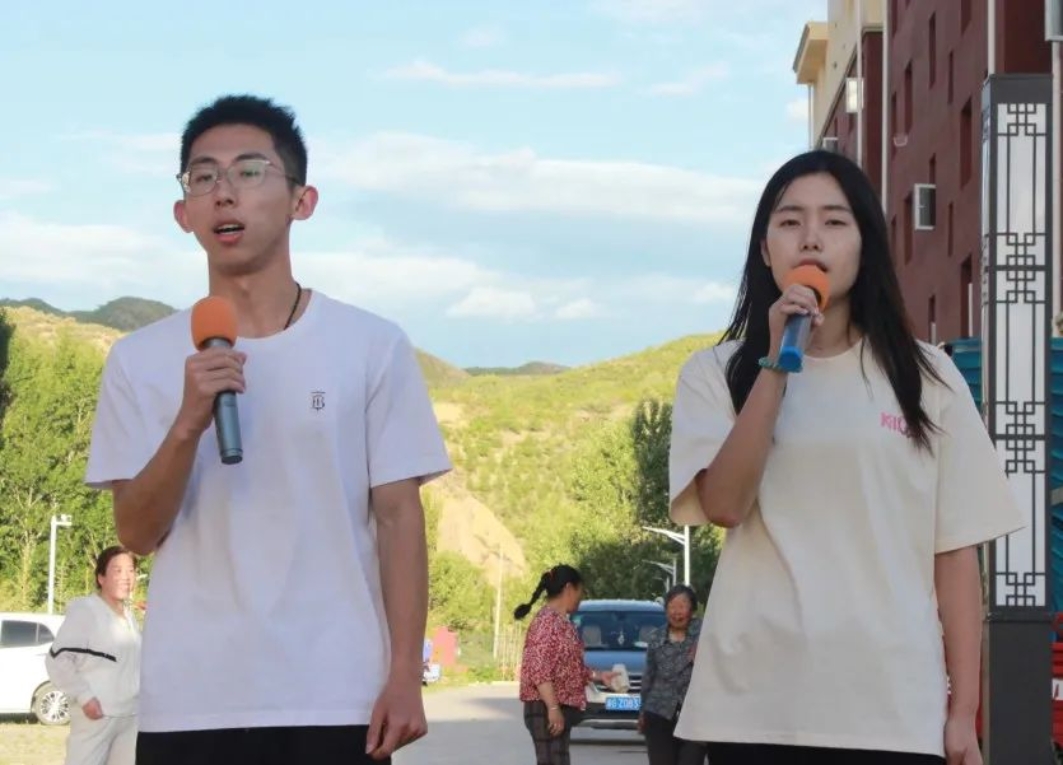 晚会即将开始,安和佳苑的广场上,老老少少的居民们从四面八方相约赶来,黄色片 辅导员王鑫老师带领实践队员们组织引导安和佳苑的居民和镇宁堡中心小学的学生们到表演的观看场地落座。马鑫洋和于鸿玮两位实践队员演唱了歌曲《火红的萨日朗》,在欢快的音乐节奏中,两位实践队员用充满活力的歌声展示青春活力,点燃了晚会的欢乐氛围。