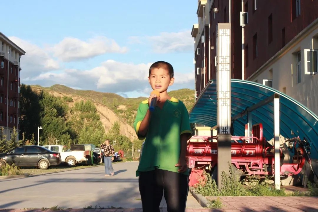 现场的实践队员们邀请到了镇宁堡中心小学三年级学生曹清宇演唱儿歌《七色光之歌》,11岁孩子的歌声纯洁清澈,银铃悦耳;全体实践成员合唱的《夜空中最亮的星》,召唤出青春希望的力量,用歌声勾勒出星辰大海的唯美画卷。