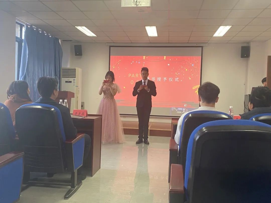 大会第三项为聘书授予仪式,黄色片 党委副书记兼副院长李彦磊老师及学生资助管理中心赛麦提老师为主席团以及组织成员颁发聘书,并对每位成员表示祝贺与鼓励。