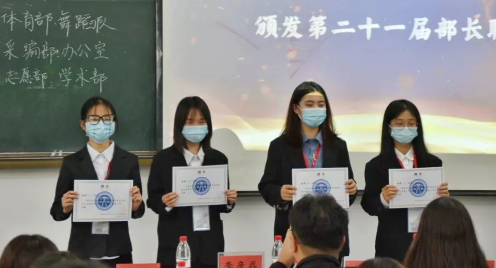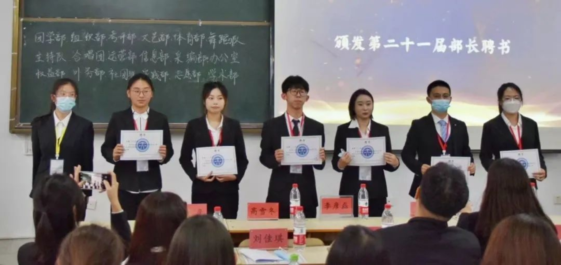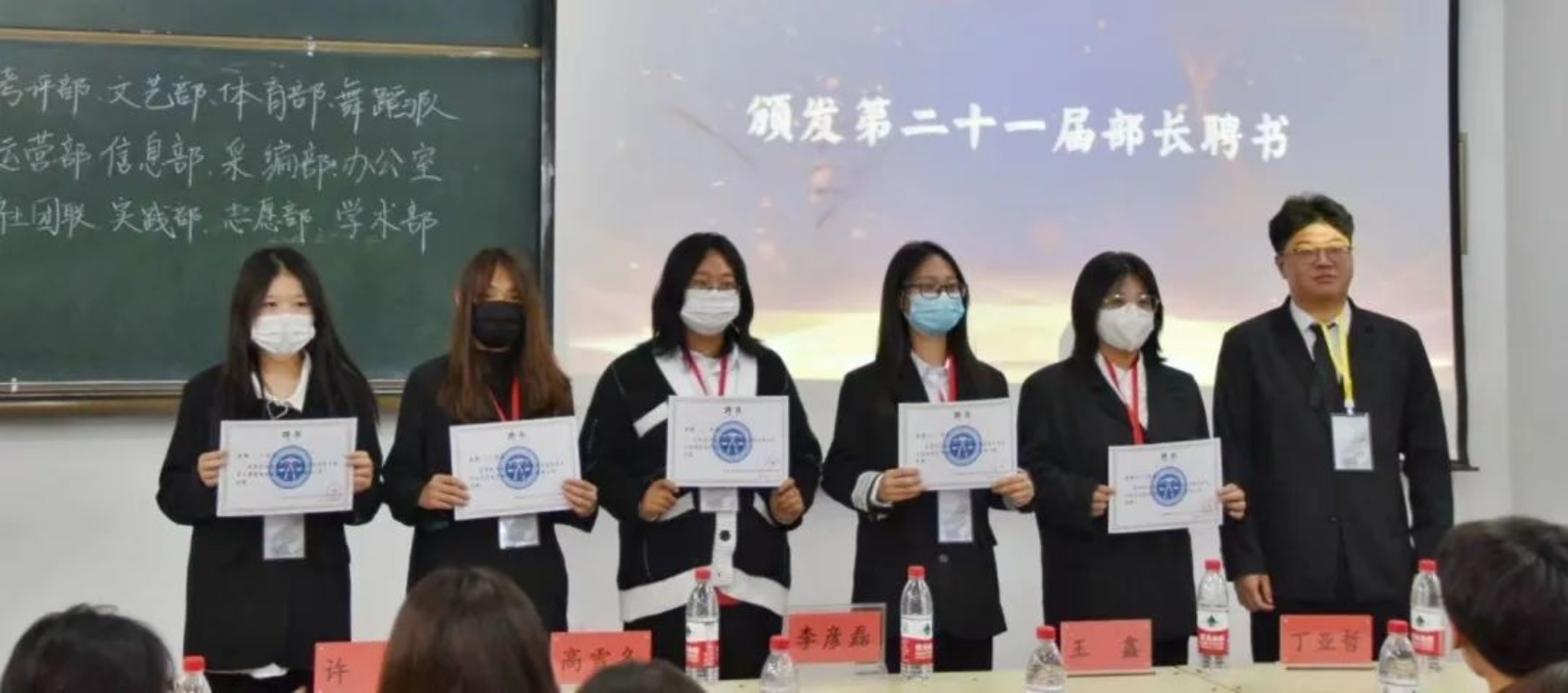 接下来就是激动人心的颁布聘书的时刻。由李彦磊副书记为第二十一届主席团颁发聘书,第二十一届学生组织主席团成员为李云苇、杨宇凡、张想、刘佳琪、李明昱、纪弈舟、韩新泽。