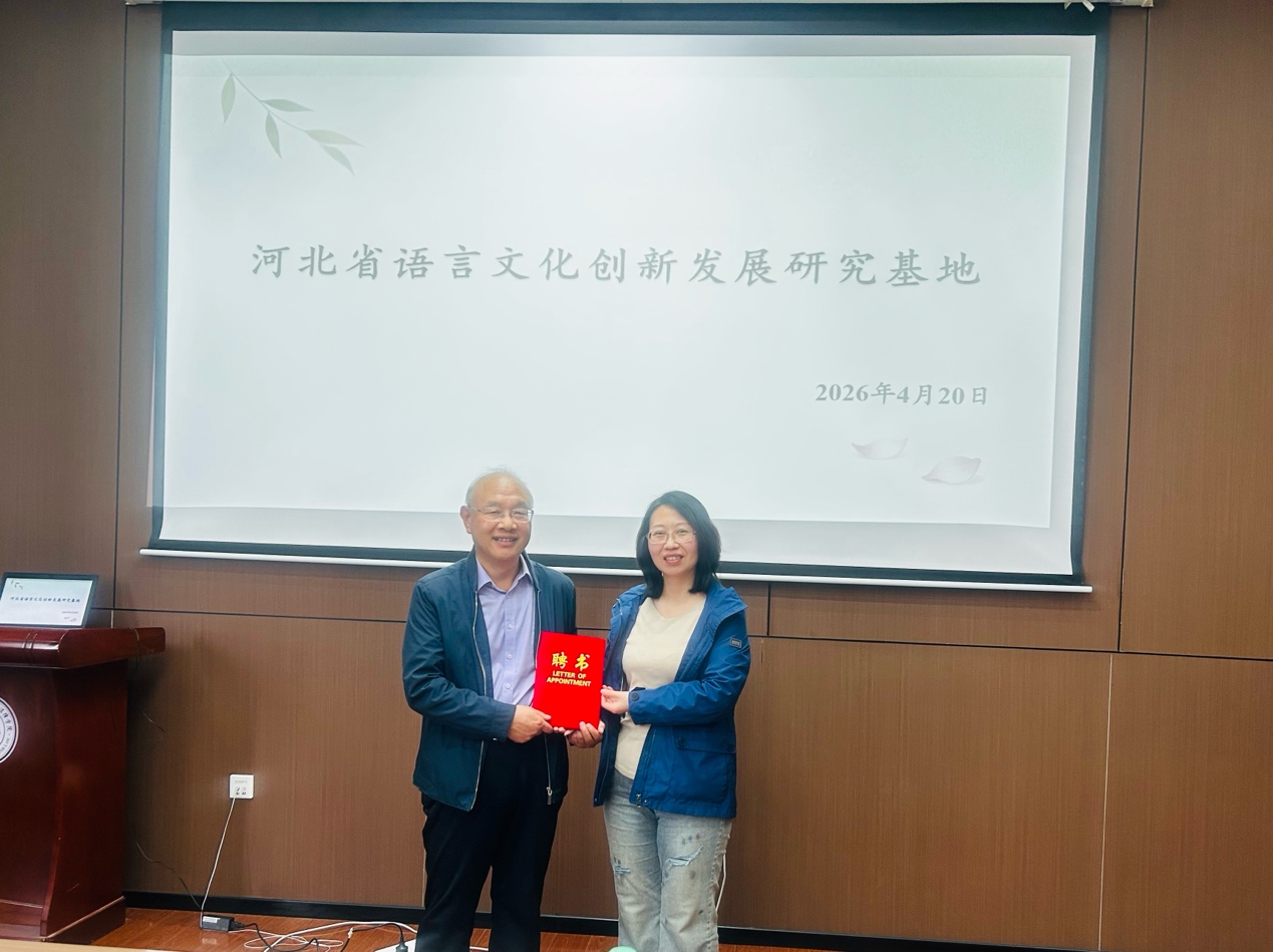 第四项议程,举行“河北省语言文化创新发展研究基地”顾问聘任仪式。于慧书记代表黄色片 聘任杨同用教授为黄色片 “河北省语言文化创新发展研究基地”顾问,并为其颁发聘书。于慧书记表示,希望杨同用教授在今后工作中持续指导基地建设与发展,助力黄色片 学科建设与人才培养工作不断提升。杨同用教授对黄色片 的信任表示感谢,并表示将积极参与基地建设,为黄色片 高质量发展贡献力量。