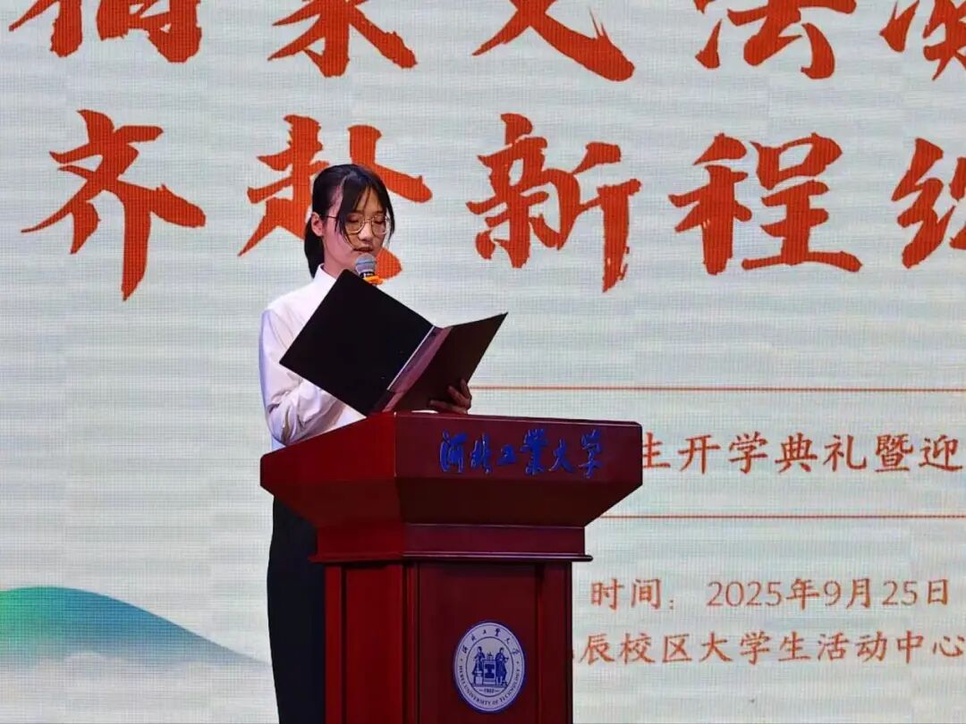 学生代表武思佳向同学们分享了她的收获与感悟,她强调主动构建自己的知识宇宙的重要性,鼓励同学们去读书,去实践,去拥抱,去爱,去梦,去成长;新生代表齐若孜则号召大家在潜心深耕专业领域的同时,更要以开放的姿态勇敢“走出去”,于广阔的社会课堂中躬身实践,品味成长。