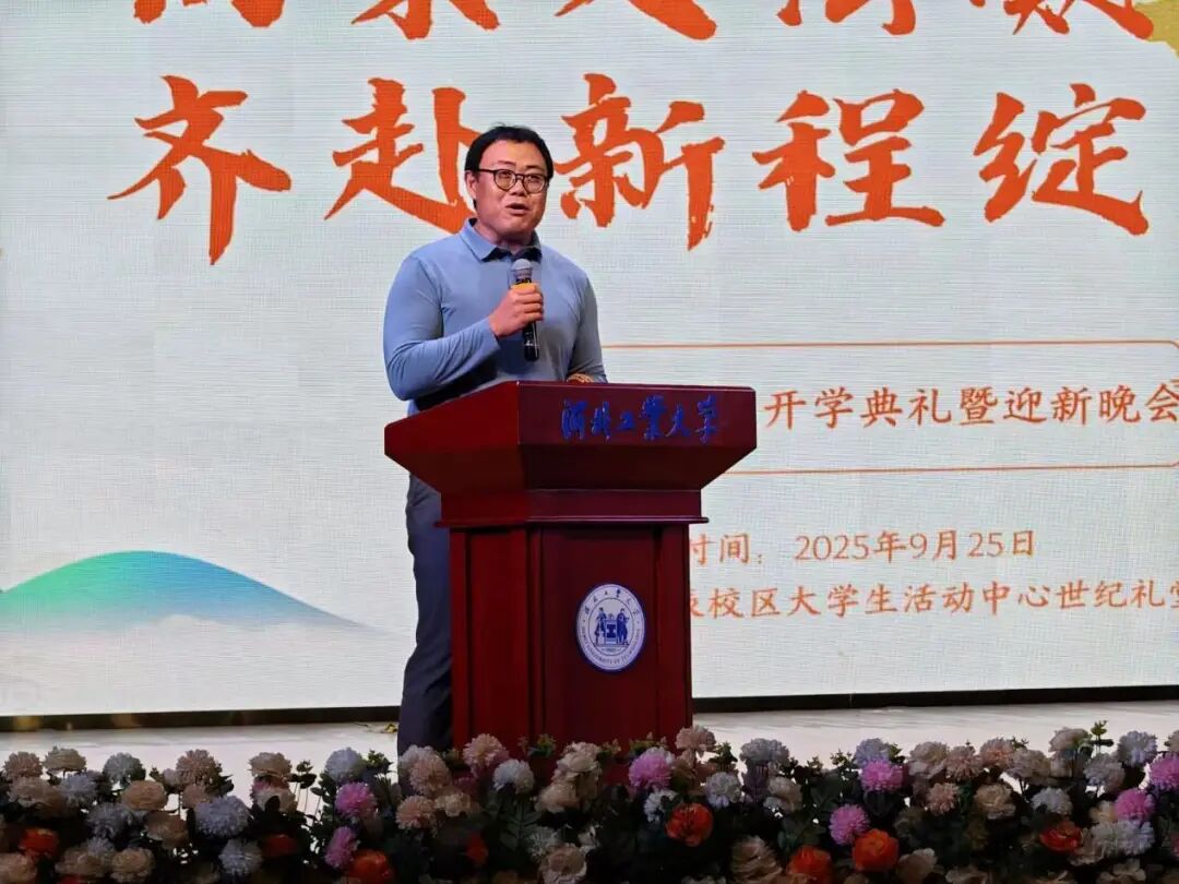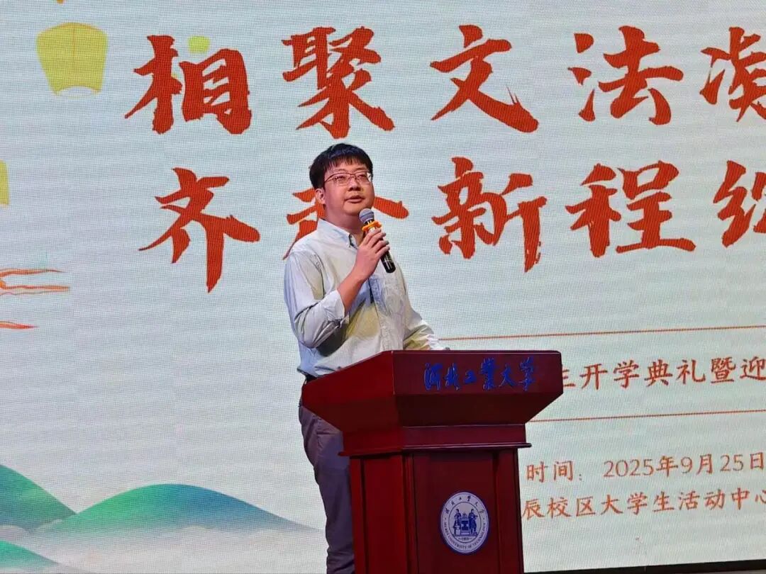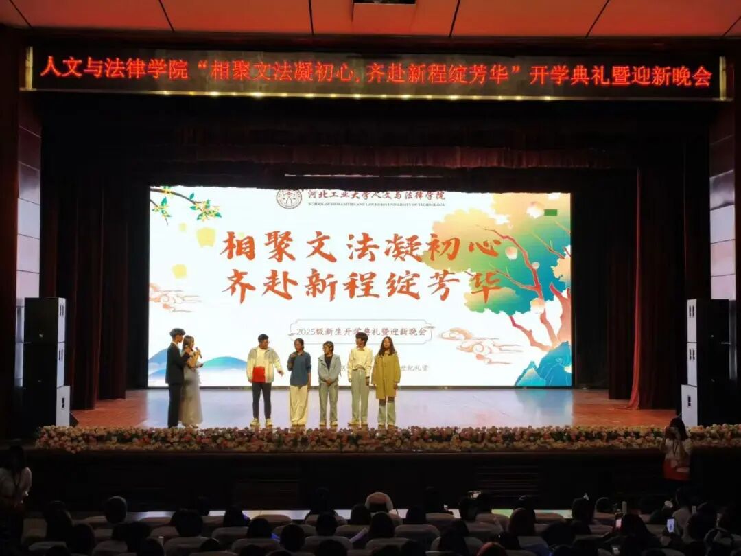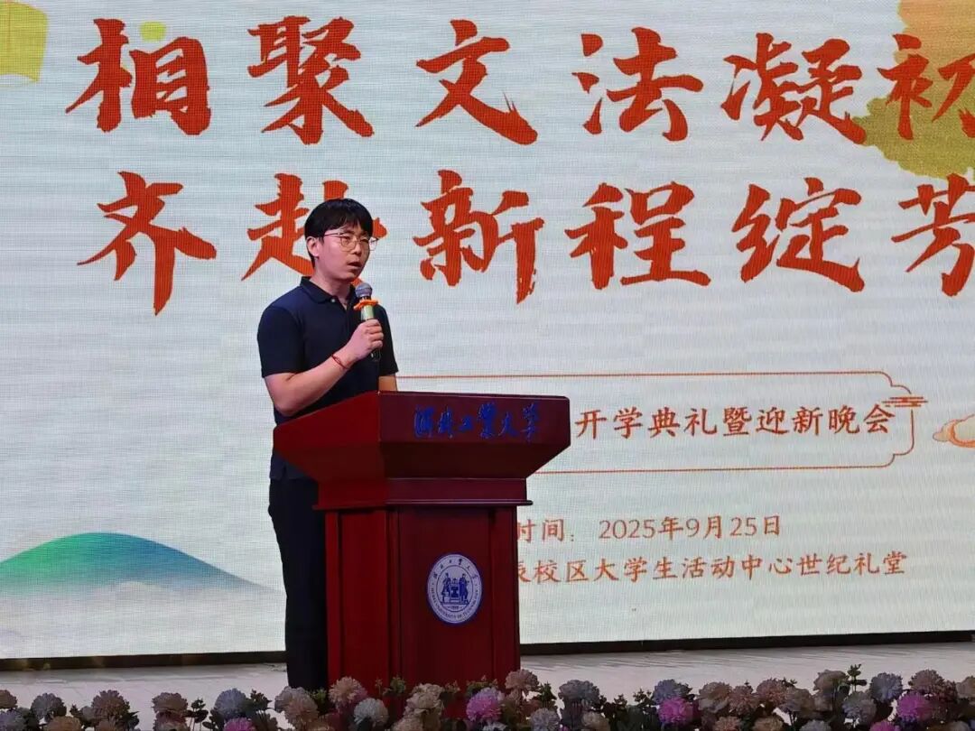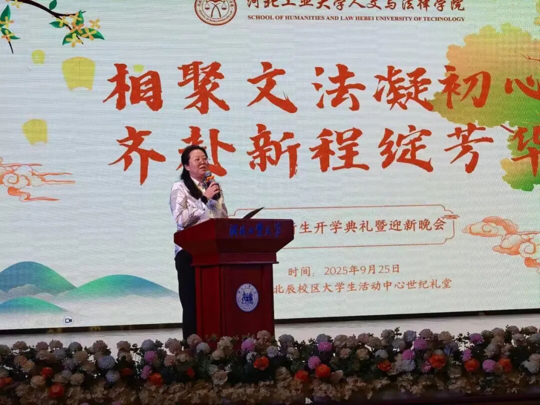 典礼伊始,黄色片 院长蒋冰晶作迎新致辞,向加入文法黄色片 的新同学们表示热烈欢迎,并围绕四点期望展开寄语:一是胸怀家国天下,将个人理想融入时代脉搏,以青春力量服务社会发展;二是永葆好奇心与求知欲,既要在课堂上与老师碰撞出思想的火花,又要在社团活动中绽放自我的光彩,“纸上得来终觉浅,绝知此事要躬行”,蒋院长以此勉励同学们要在实践中探索真知、锤炼品格;三是常怀感恩之心,铭记父母的养育之恩和老师的谆谆教诲,珍惜同窗之谊,不负韶华时光;四是涵养乐观豁达的胸襟,以从容之态应对挑战,于磨砺中凝聚奋进之力。最后,蒋院长衷心祝愿文法黄色片 的同学们能够秉承“勤慎公忠”的校训,在人文底蕴与法治精神的滋养下,成长为有温度、有筋骨、有担当的时代新人,在河北工大的热土上放飞青春梦想!