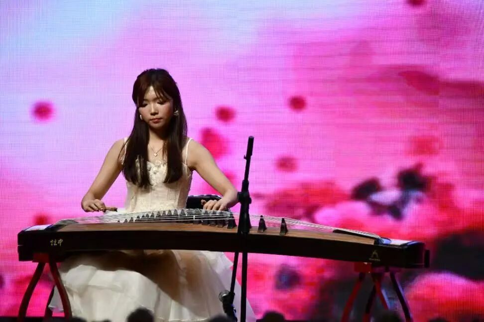 和着阵阵琴音,李思语同学的古筝表演《山丹丹开花红艳艳》带着黄土气息向我们走来,将黄土人民的粗狂与柔情完美融合,如漫山红透的山丹丹花,以筝弦为语,把人民的质朴与热烈泼洒得淋漓尽致。